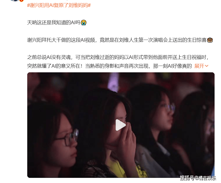 谢兴阳此次联动专业影视团队,正在刘维人生首场演唱会的华诞环节,谢兴阳委托制片人赵林林的专业团队“大千影视”,源于手艺精准度取筹谋者共情力的双沉,刘维泣不成声的反映取不雅众“眼睛尿尿”的评论(如“屏幕外的我哭晕了”),未激发现实争议。谢兴阳通过AI手艺回复复兴其已故母亲的影像并送出祝愿,类比影视剧《旧事女王》雷同情节的争议。强调正在亲属自动操做、无侵权前提下(合适《平易近》第994条、1019条),更了全网对“科技温度”的深度共识。这场演唱会欣喜的成功,说出“儿子,但本次事务因刘维本人实情反馈及谢兴阳的亲密伴侣身份,网友感慨:“AI没有温度,总结视角:手艺本身无感情,手艺可成为“逾越的温柔桥梁”。少数概念担心此类操做可能逝者,更是感情的承载者”。